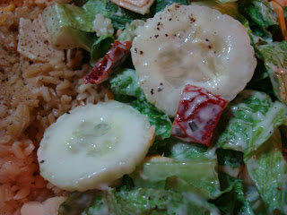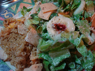 And for Scott I made, Homemade Tahini “Cesar” Dressing on Romaine Lettuce , Topped with Smoked Turkey & Cheese and Brown Rice.